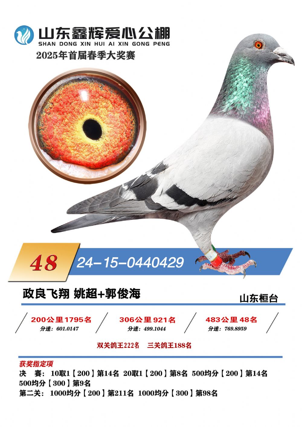 山东鑫辉爱心公棚决赛获奖鸽欣赏