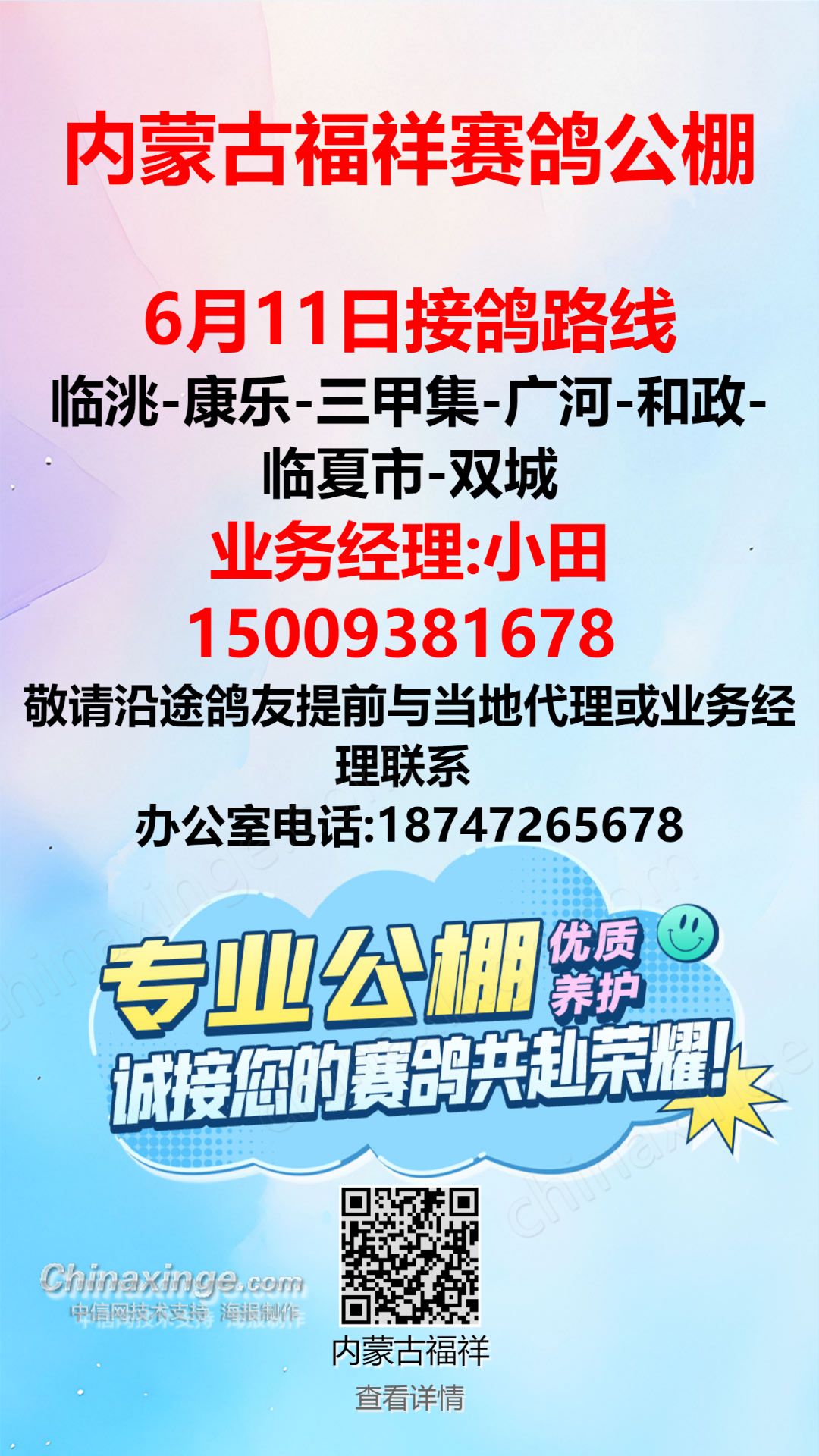 内蒙古福祥赛鸽公棚6月11日接鸽路线