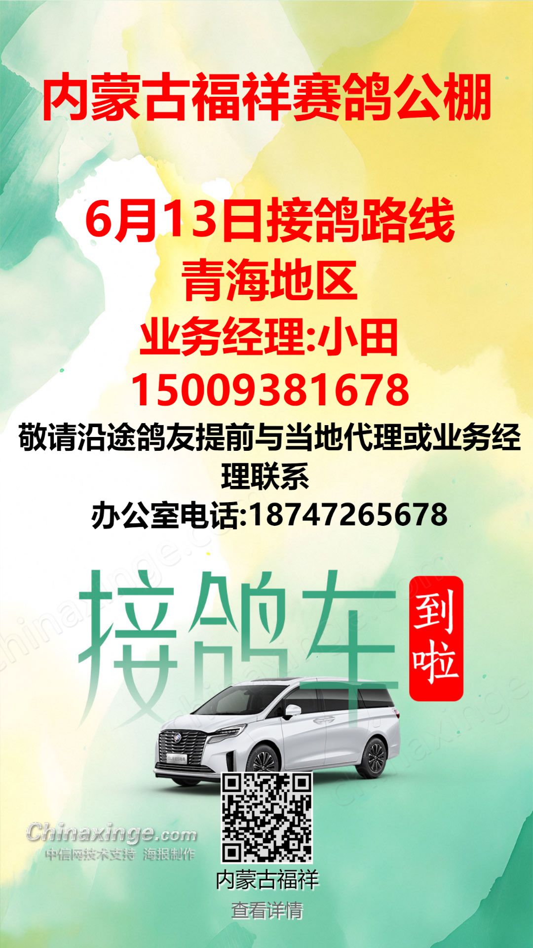 内蒙古福祥赛鸽公棚6月13日接鸽路线