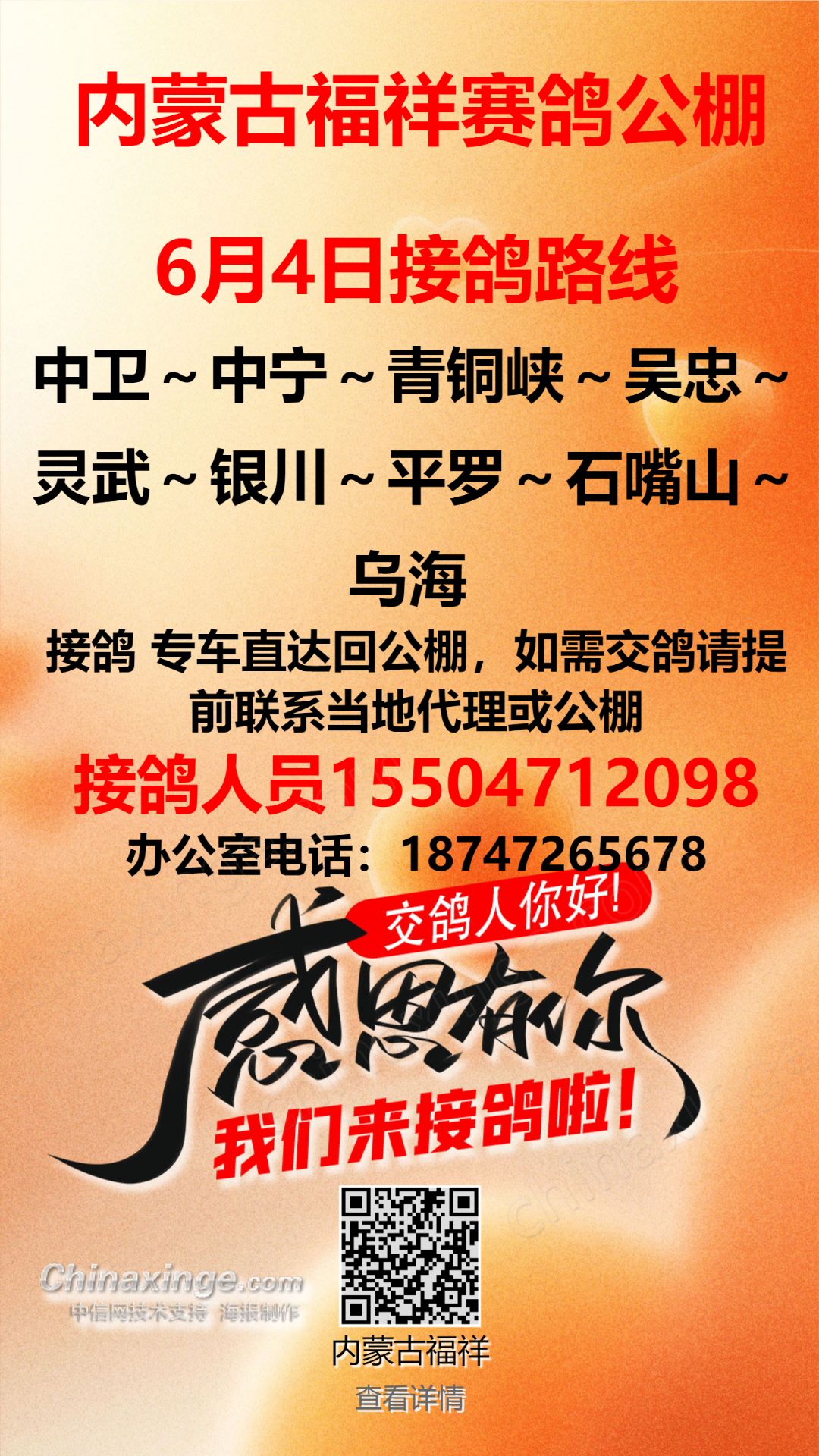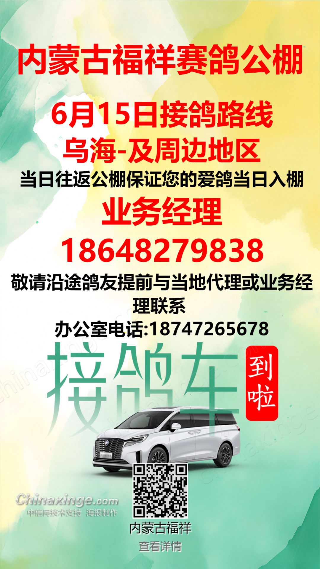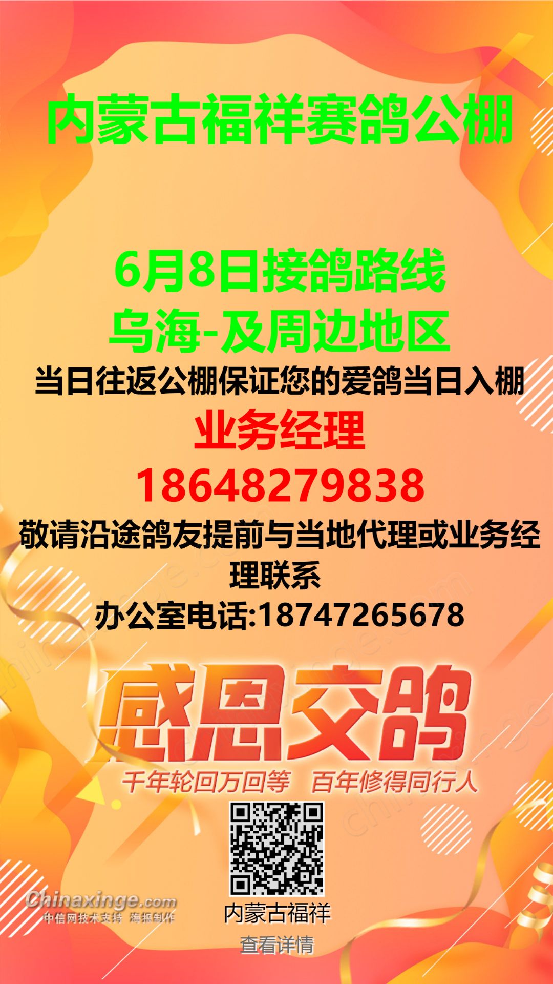 内蒙古福祥公棚6月8日接鸽路线:乌海
