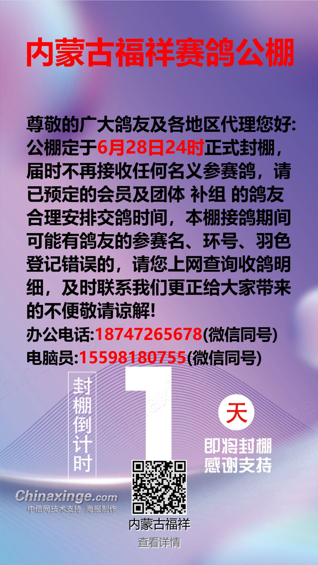 内蒙古福祥赛鸽公棚封棚倒计时5天