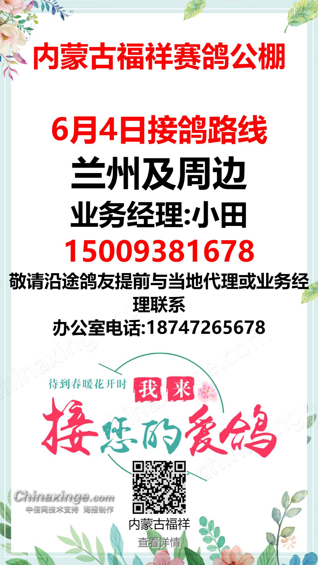 内蒙古福祥赛鸽公棚6月4日接鸽路线