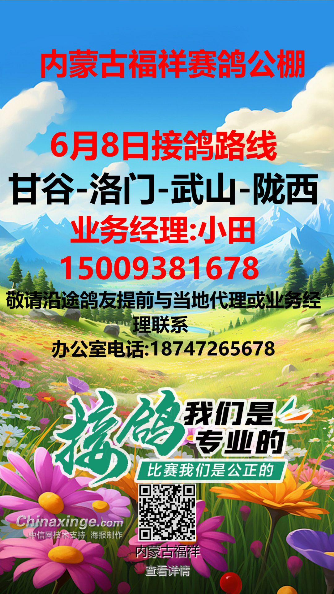 内蒙古福祥赛鸽公棚6月15日接鸽路线