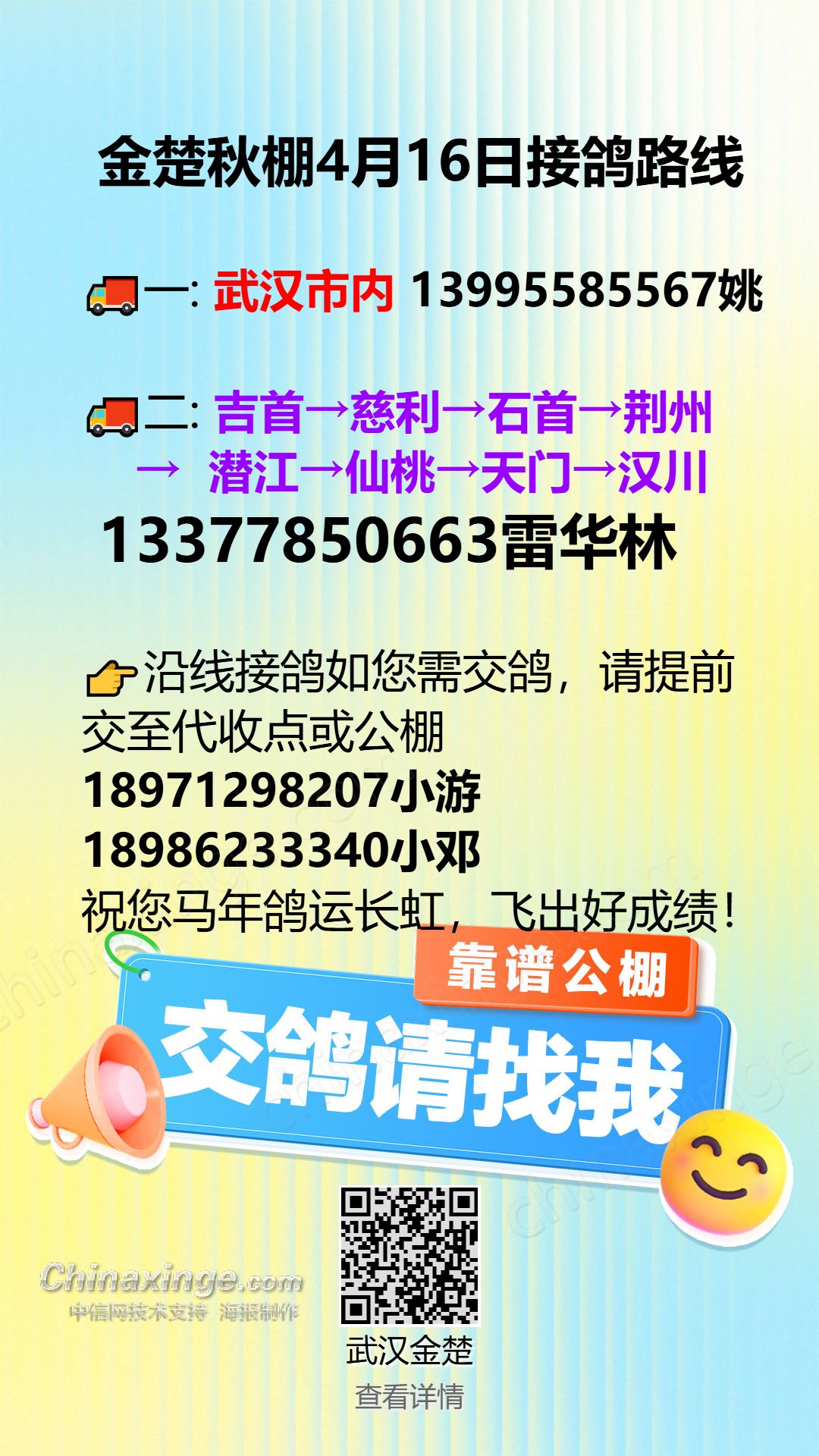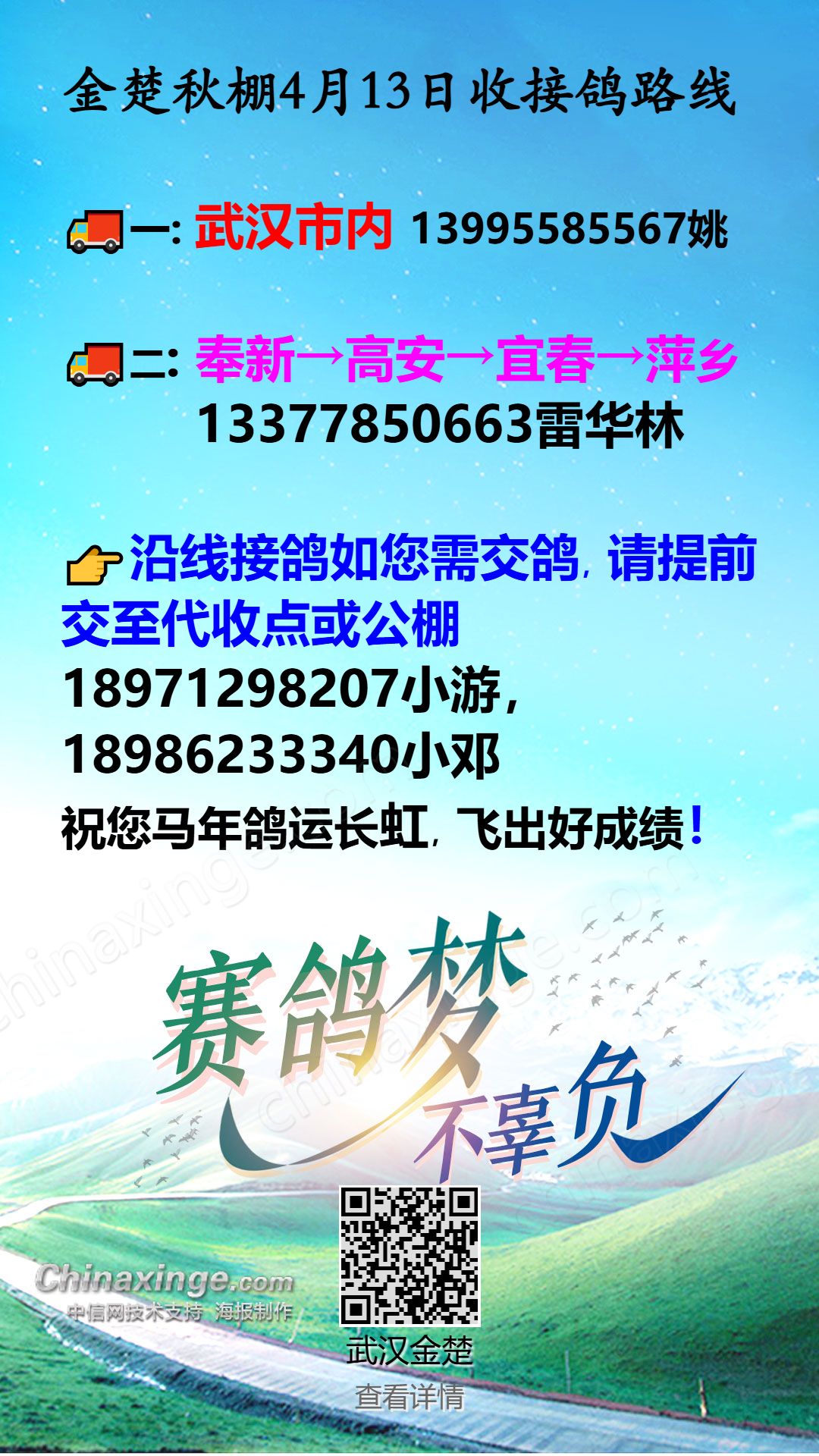 金楚秋棚4月13日收接鸽路线