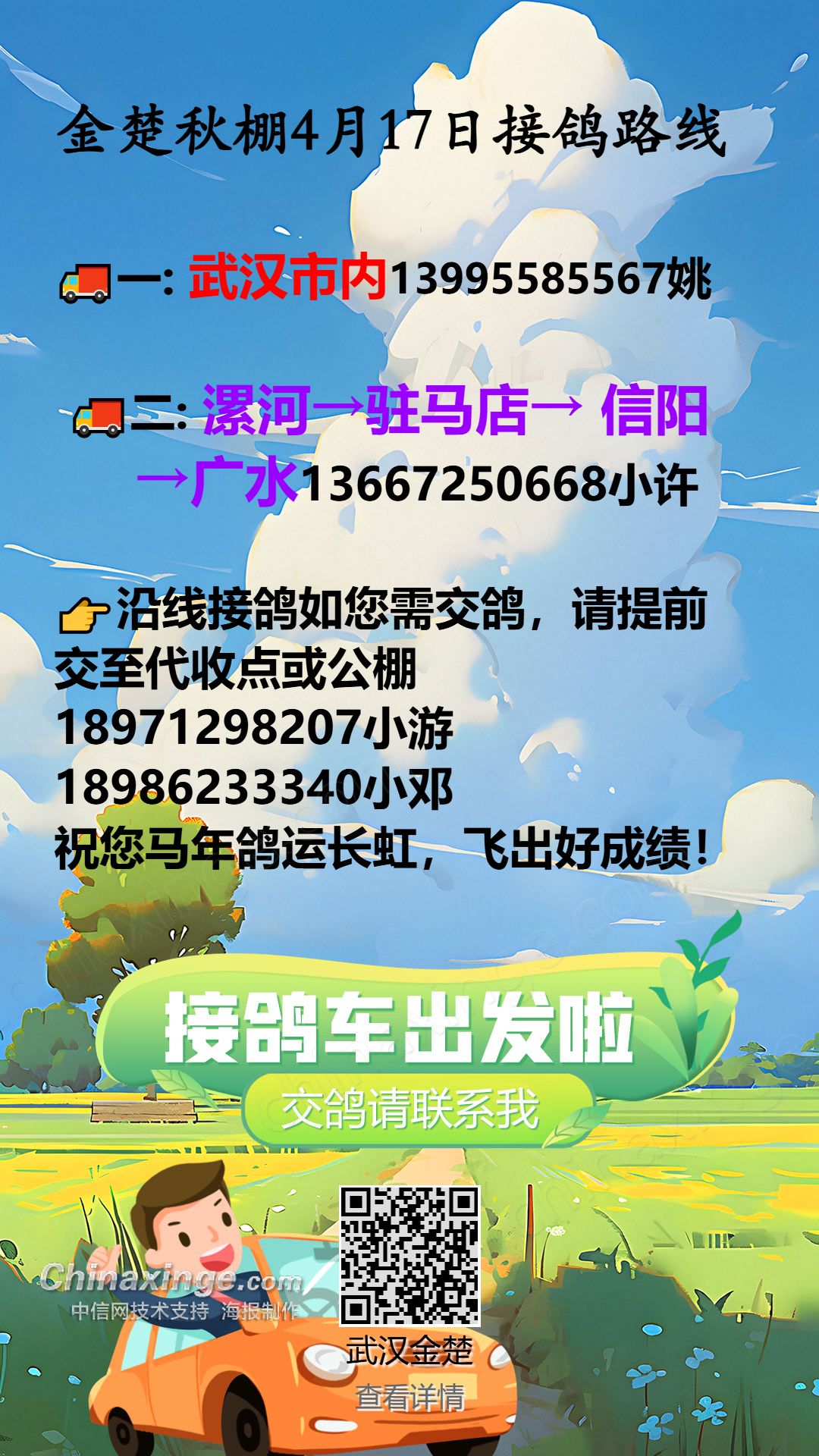 金楚秋棚4月17日接鸽路线